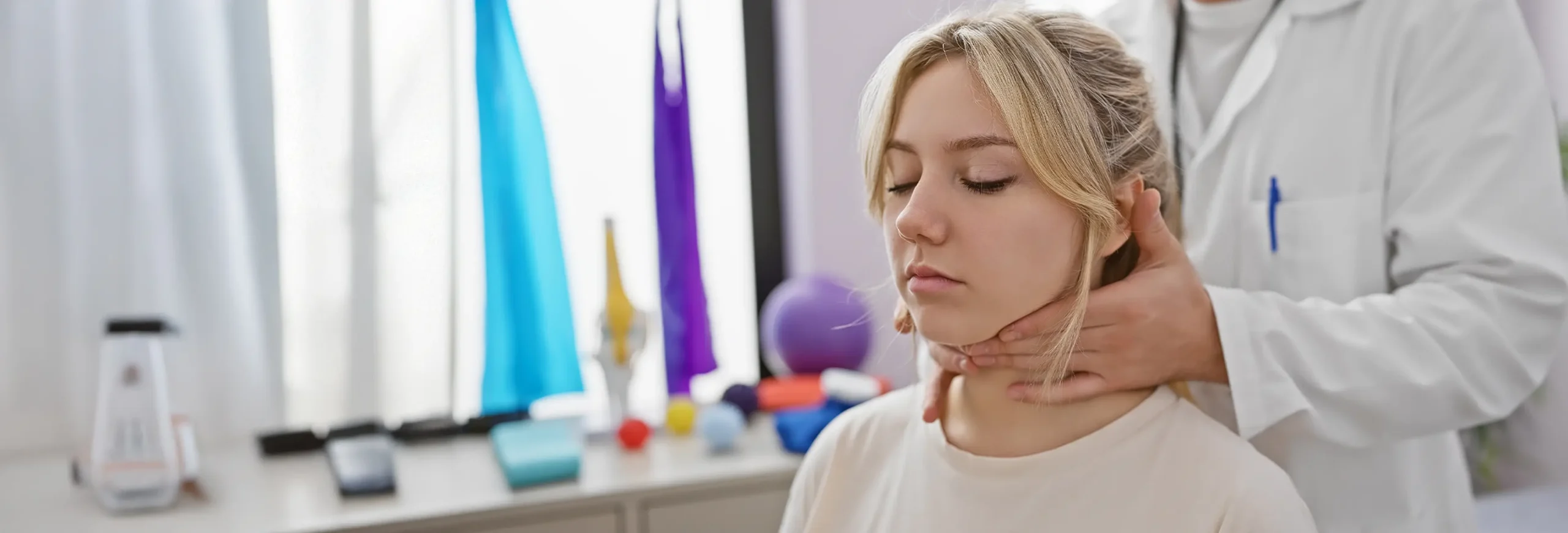 - Chin-tuck sets (3×10/day) to activate deep neck flexors